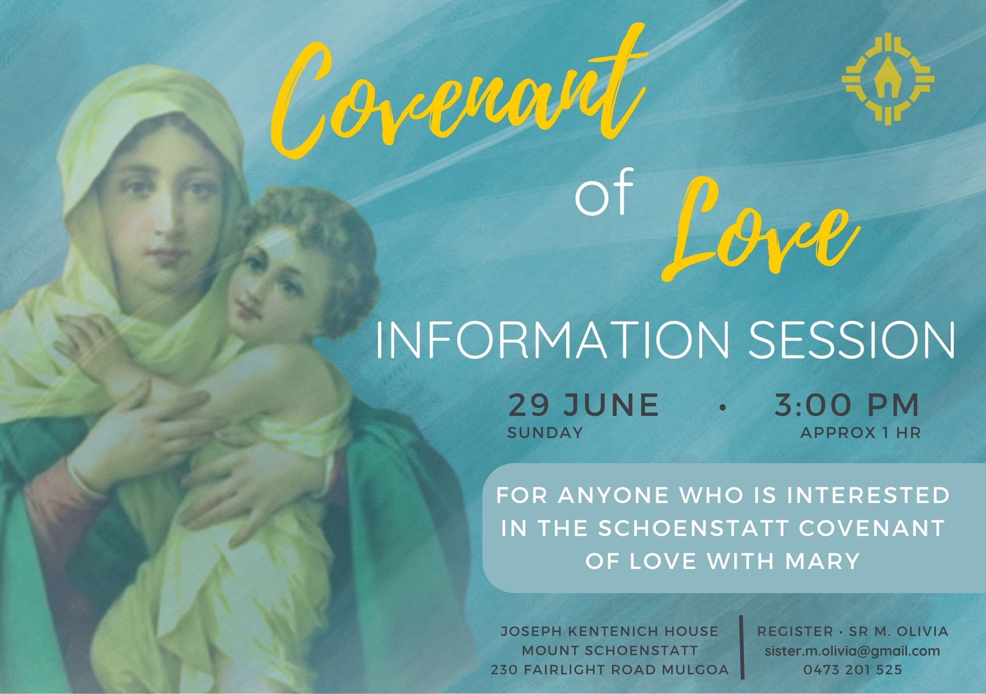 Mount Schoenstatt 230 Fairlight Road, Mulgoa, NSW, AustraliaSchoenstatt’s Annual Marian Pilgrimage WITH MARY – PILGRIMS OF HOPE Sunday 18th May at Mount Schoenstatt (230 Fairlight Road, Mulgoa 2745) Program: 9.30 am Sacrament of Reconciliation available 10.15am Welcome & […]