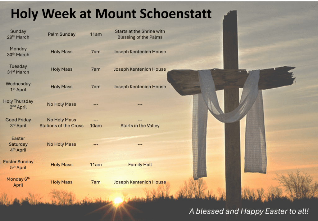 Holy Mass Times at Mount Schoenstatt, Mulgoa